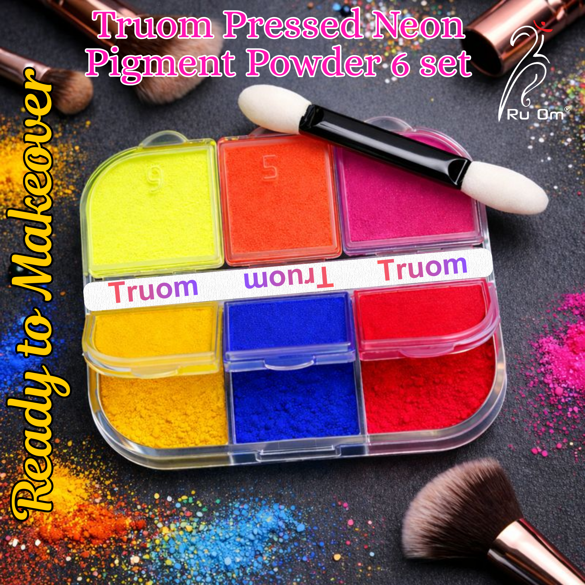 ✨ Pressed Neon Pigment Powder 6 Set is a compact, travel-friendly pigment makeup set that upgrades any professional or personal kit