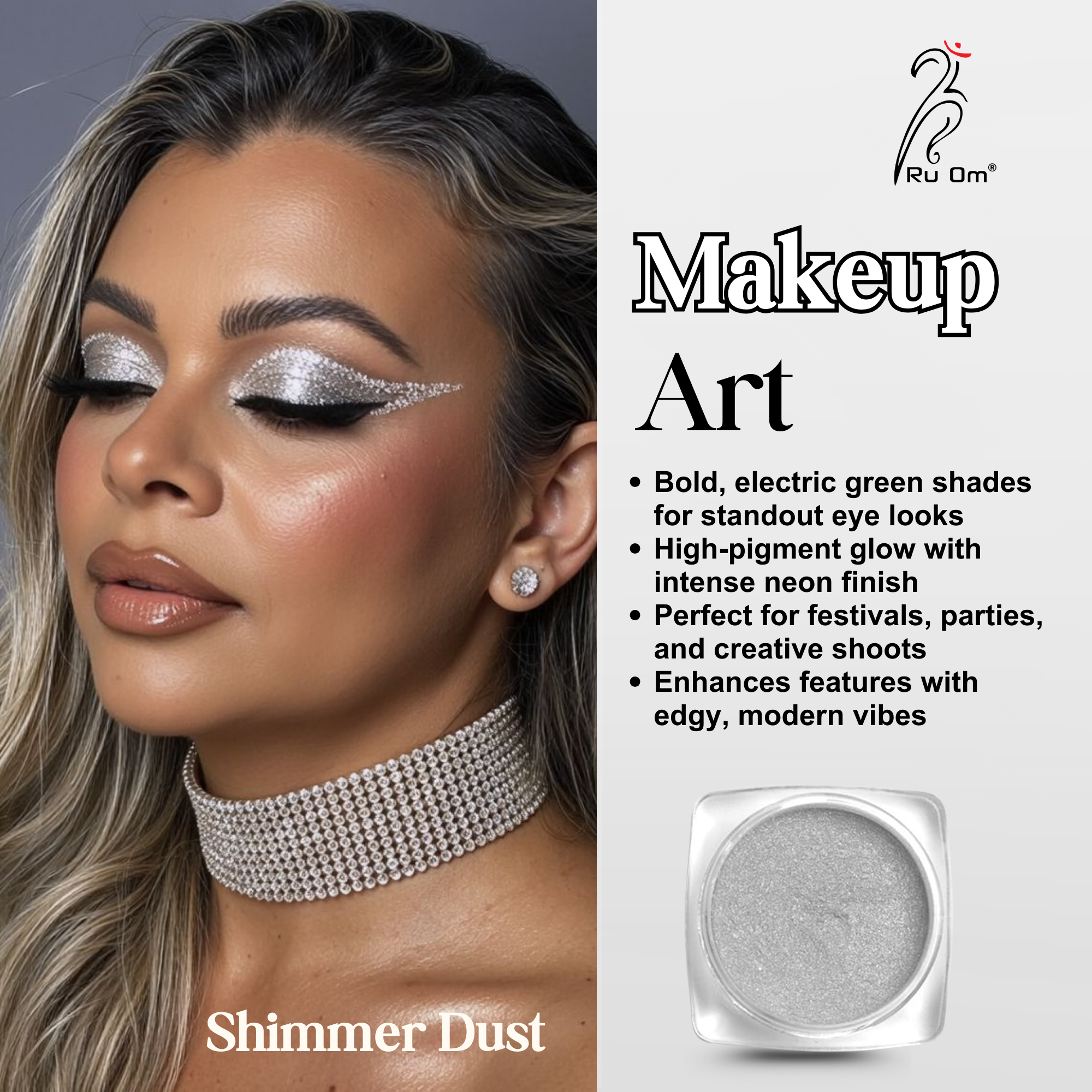 ๐ Use Shimmer Dust Silver as an eye makeup shimmer for festive, bridal, and night-party styles.