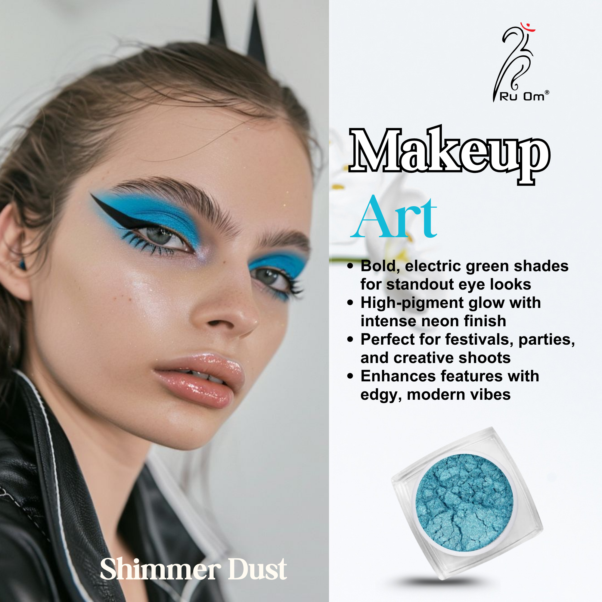πŸ’„ Use Shimmer Dust Sky Blue as an eye makeup shimmer for daytime glam or evening parties.