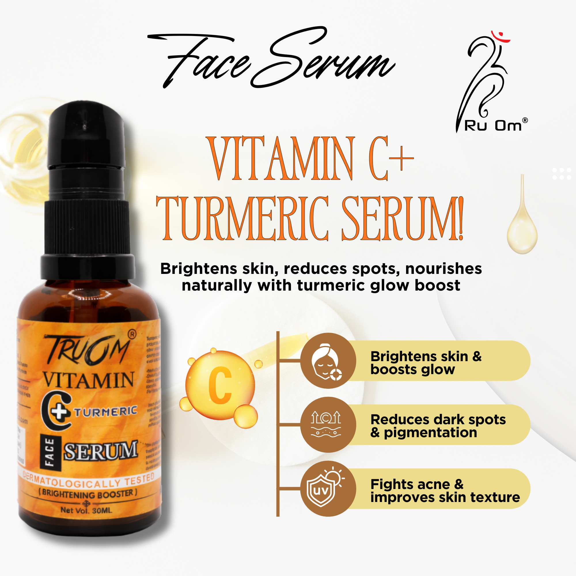 Vitamin C+Turmeric serum dull skin ko brighten karta hai aur natural glow enhance karta hai
